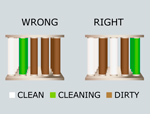 要調整的脈沖順序,以確保被清灰的濾芯不會被相鄰的濾袋清灰粉塵所污染。錯開的清灰次序,有助于減少二次揚塵。 |